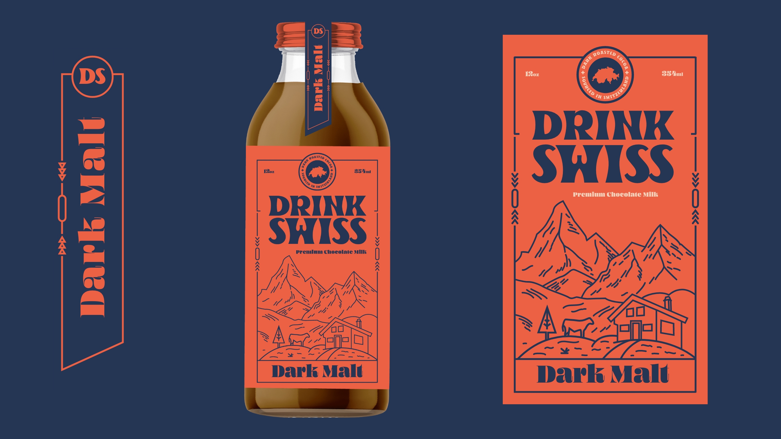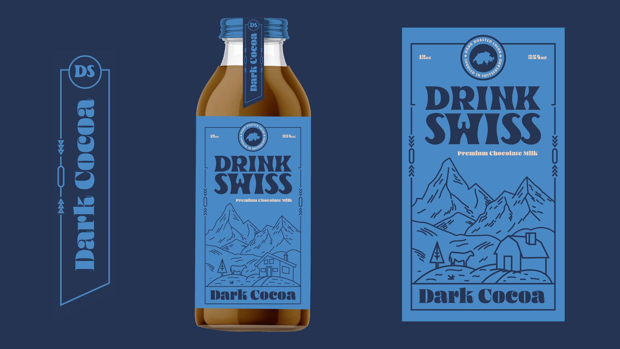 The people at Drink Swiss were in the early stages of production of their new Swiss Chocolate milk. The needed Red Rider creative to help them create some bottle label concepts.