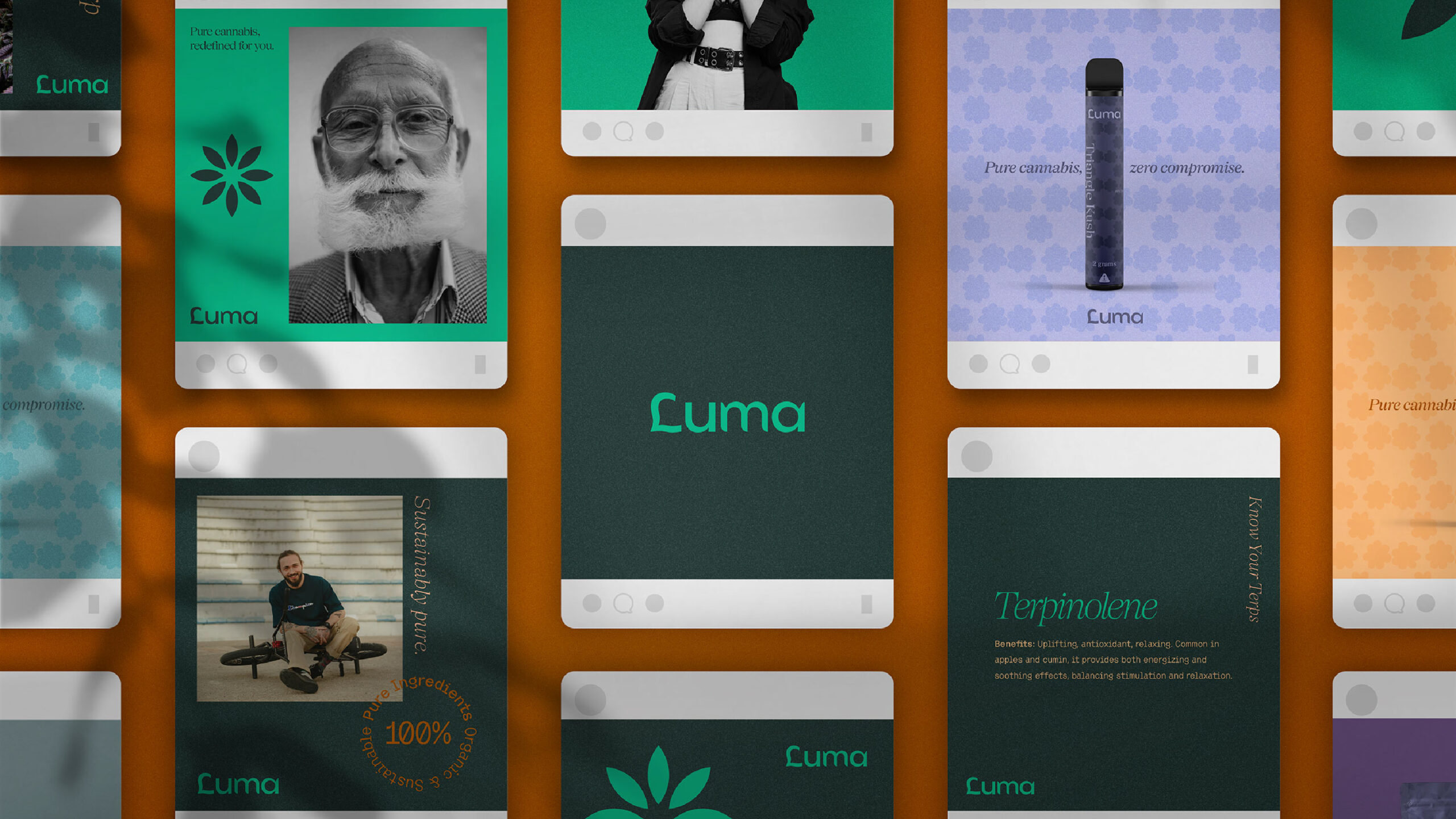Every element of Luma’s brand design exudes high-end quality, from the sophisticated typography to the unique color palette, creating a look that’s unmistakably theirs. The comprehensive design system we built guarantees a seamless and elevated experience, positioning Luma as a leader in premium cannabis. It’s a brand crafted to make a lasting impression, setting new standards in a market often flooded with imitative or uninspired designs.
